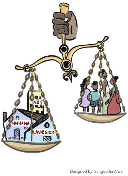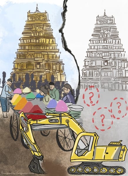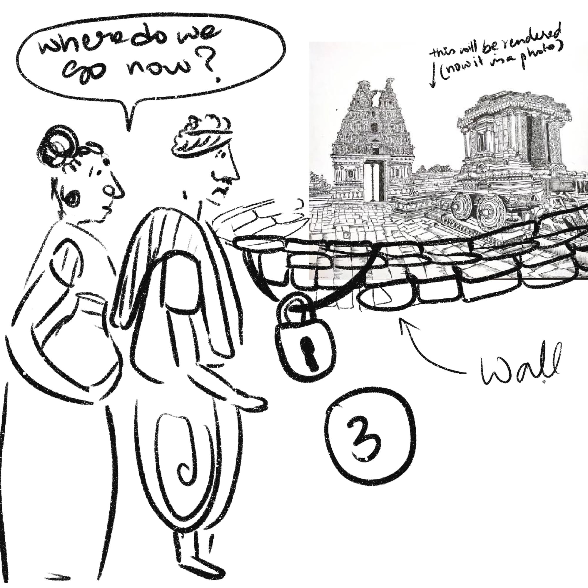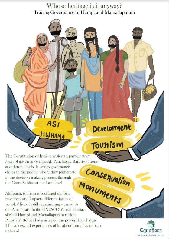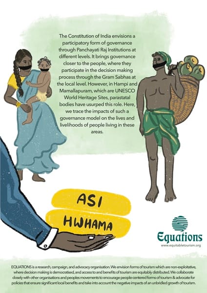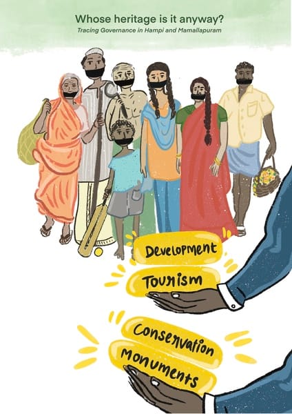 Working on the cover and illustrations for EQUATIONS’ field report, "Whose Heritage is it Anyway?" was an opportunity to visually capture the complexities of heritage, identity, and conflict. This report questions the ownership and governance of UNESCO World Heritage Sites, particularly in Hampi, where the interests of tourism, conservation authorities, and local communities often clash.