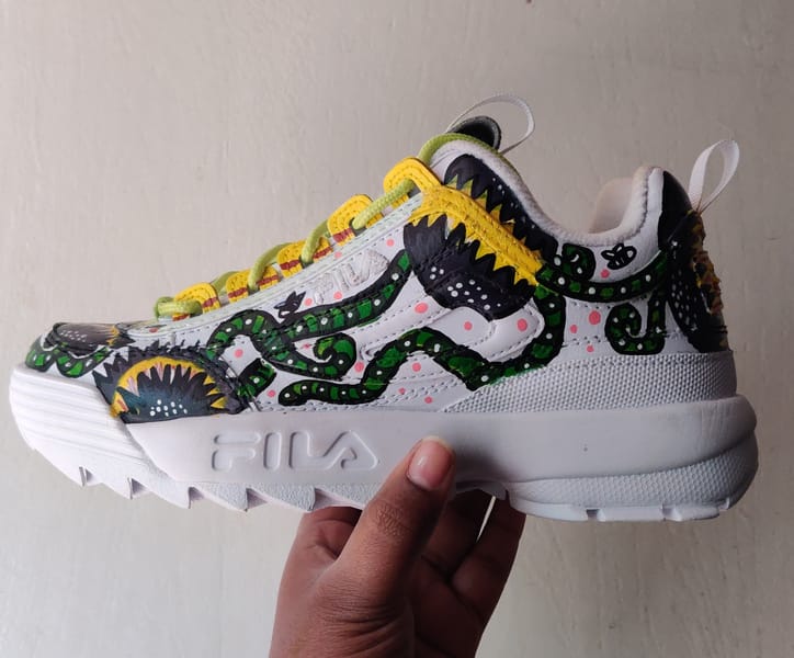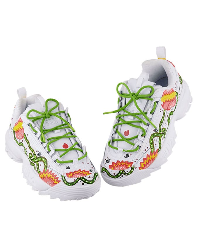 Part of Tinder’s "All of a Kind" collection, this one-of-a-kind FILA Disruptor II was displayed across India and auctioned to support Crea World, a human rights organization advocating for sexual freedom.